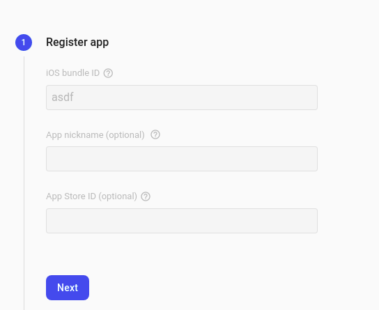 - Register your Android app by providing the following details: a. iOS bundle name b. App nickname (optional) c. App Store ID (optional)