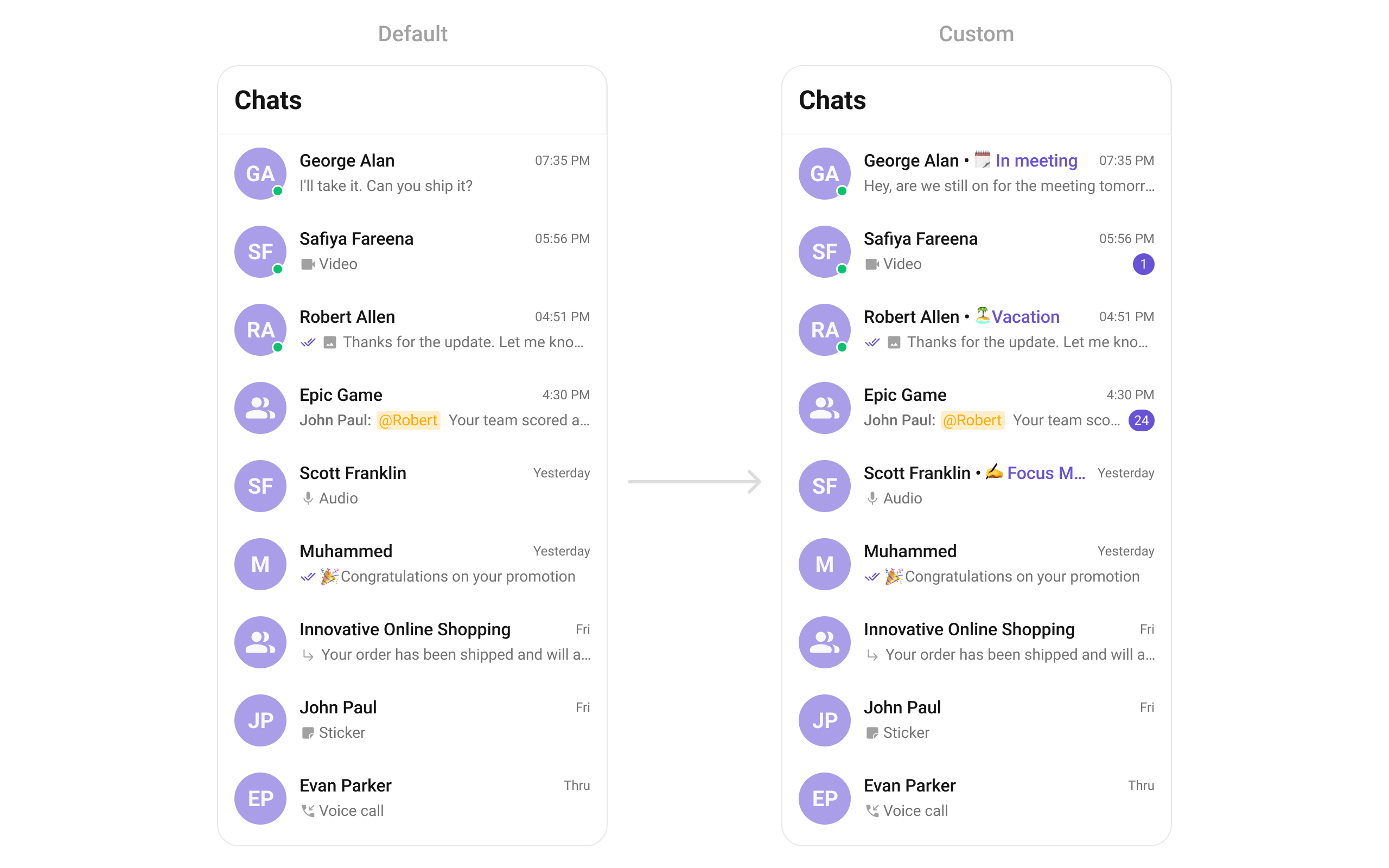 - Custom fonts or text styles for conversation names