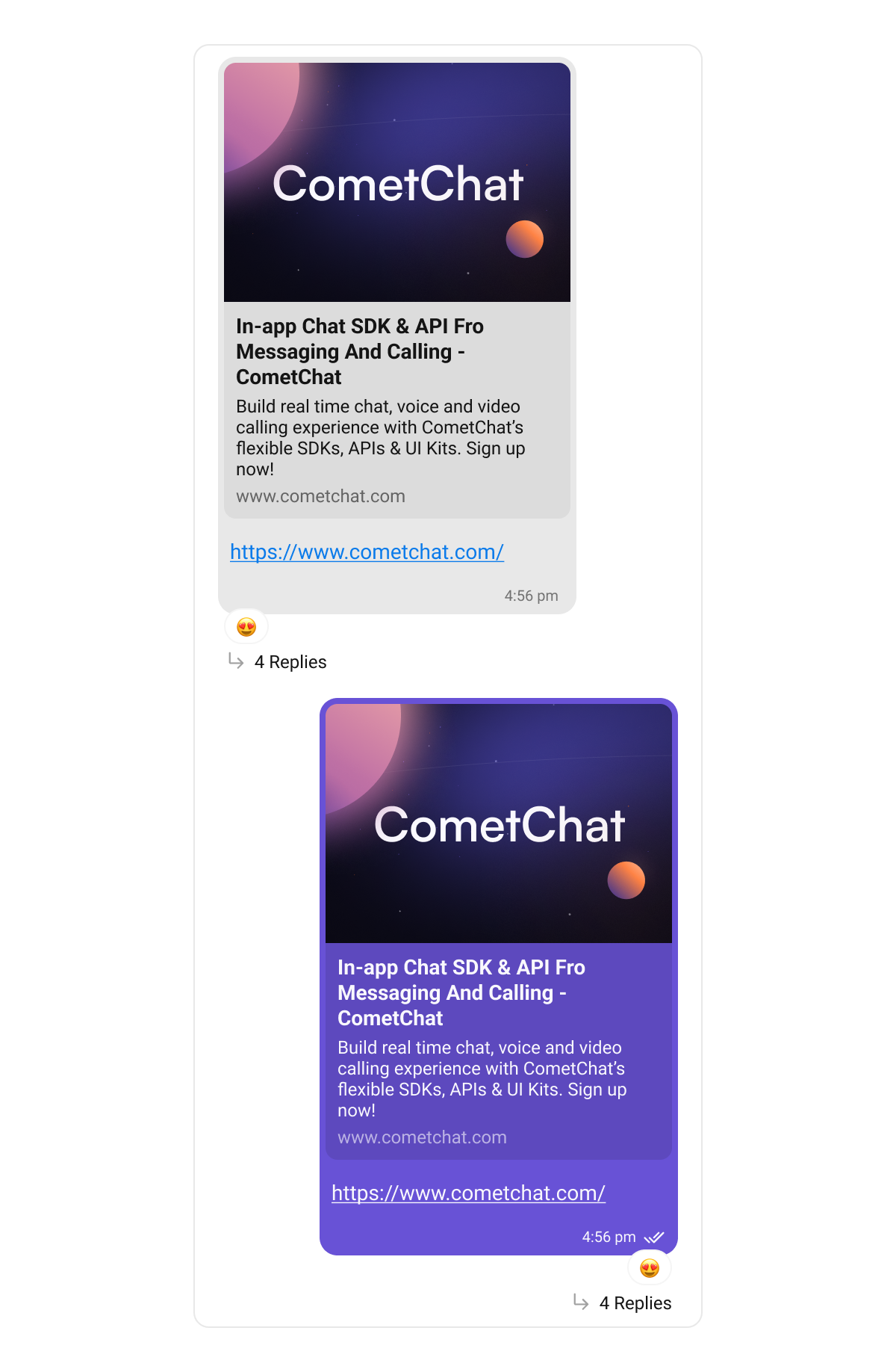 - Link preview bubbles: Style links with previews for shared URLs.