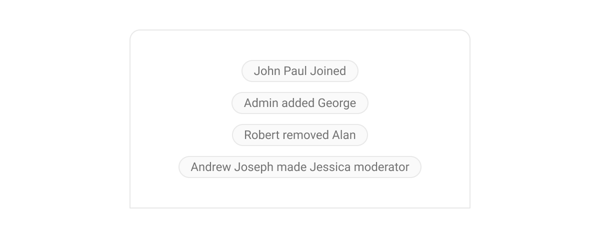 Specialized bubbles for various message types, such as: