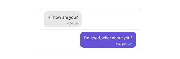 Text bubbles display plain text messages, which are the most common message type. The following code snippet shows how customize the text message bubble:- Swift