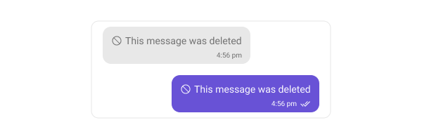 Delete bubbles displays messages that have been deleted by the sender. These indicate the message removal within the chat interface. The following code snippet shows how customize the delete message bubble:- Swift
