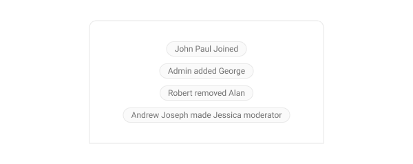 Action bubbles provide a customizable interface for displaying a variety of actions, such as group actions, within a chat. The following code snippet shows how customize the action message bubble:- Swift
