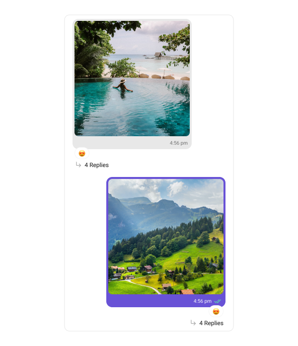 Image bubbles display messages with images. The following code snippet shows how customize the Image message bubble:- Swift