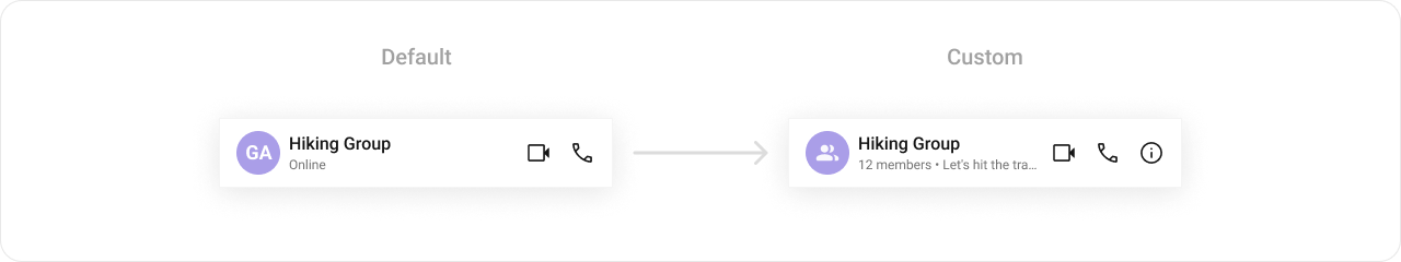 Enables customization of the trailing view which gets added next to the call buttons. Use Cases:- Add an options menu (⋮) for more actions.