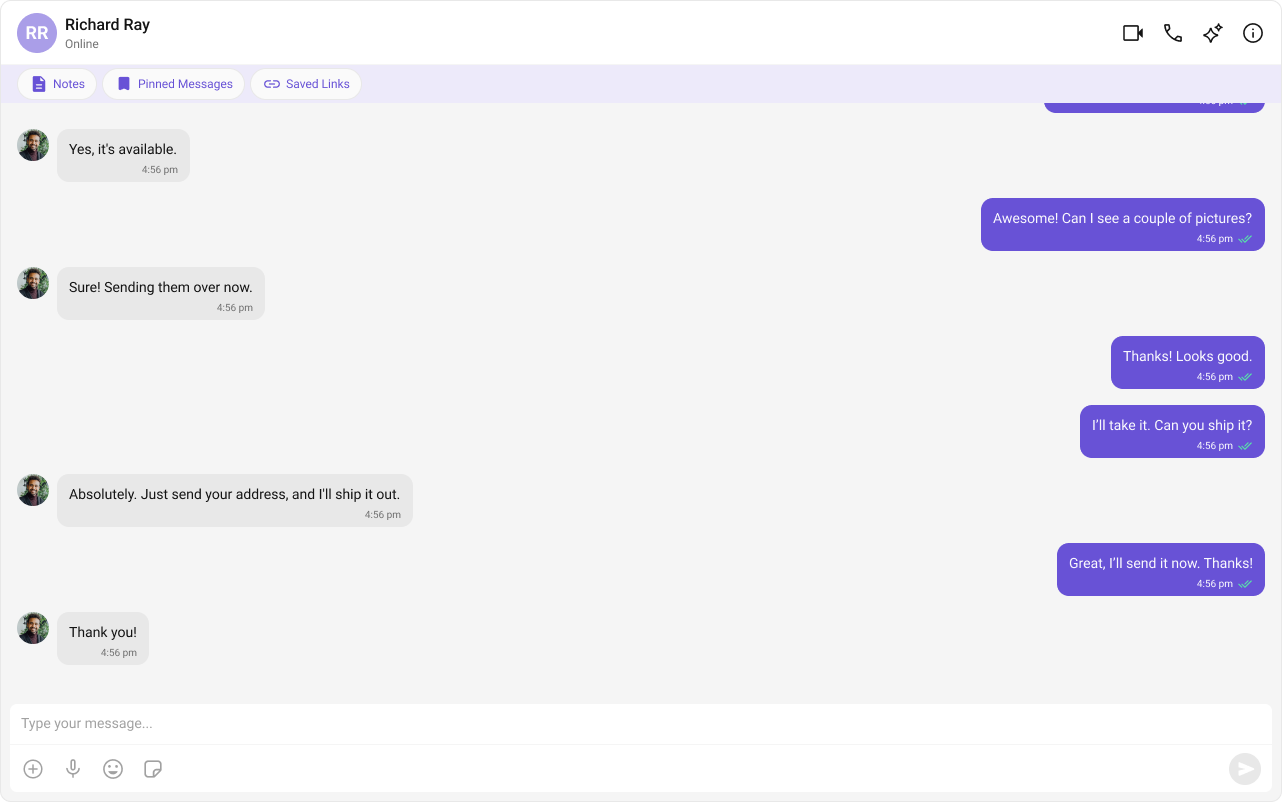 MessageList is a composite component that displays a list of messages and effectively manages real-time operations. It includes various types of messages such as Text Messages, Media Messages, Stickers, and more.