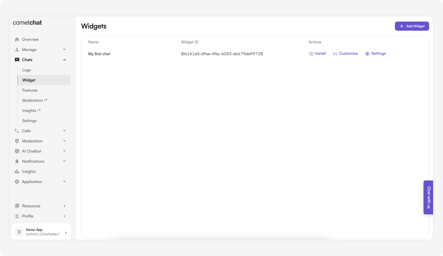 - Click on the Chats tab, then select Widgets from the left navigation pane.